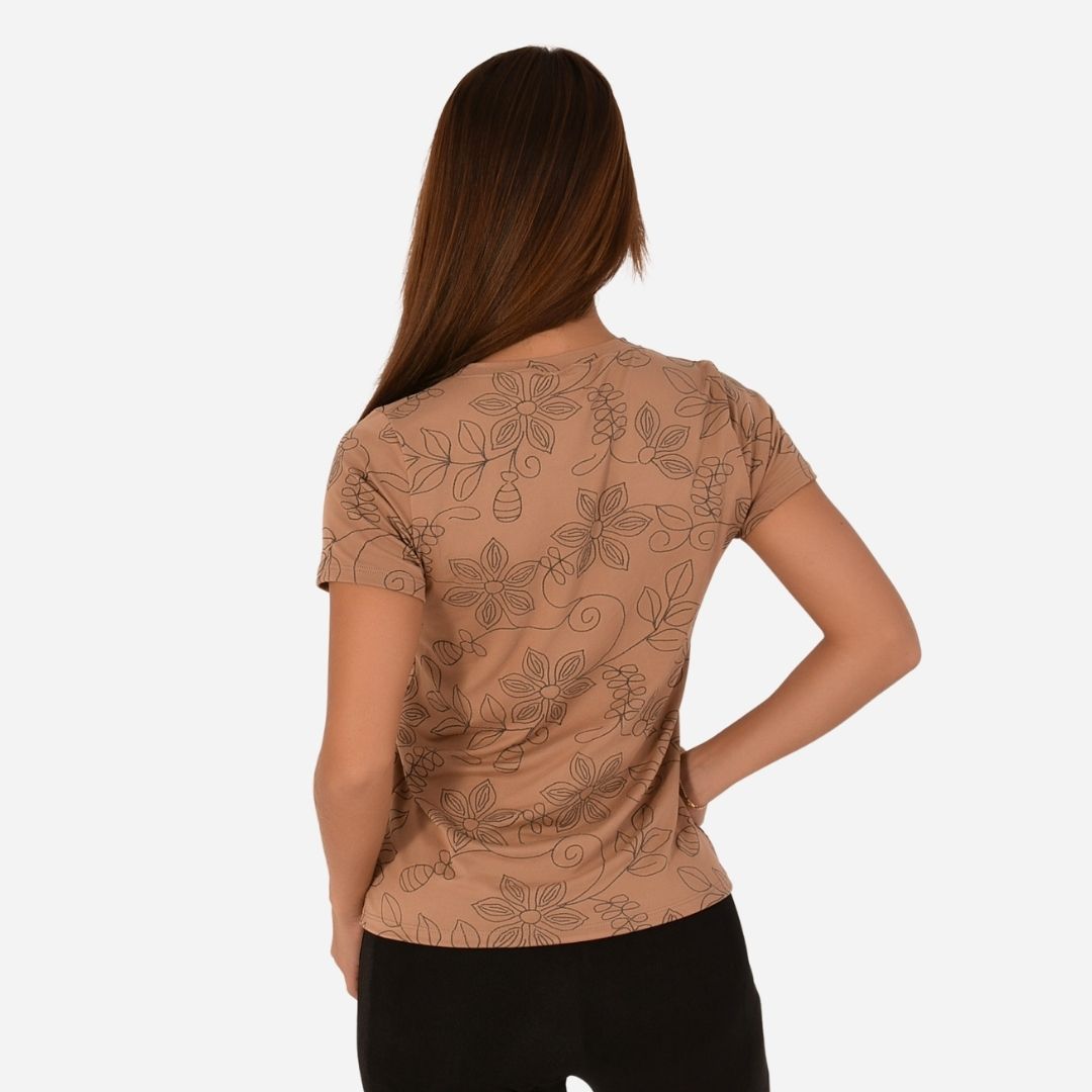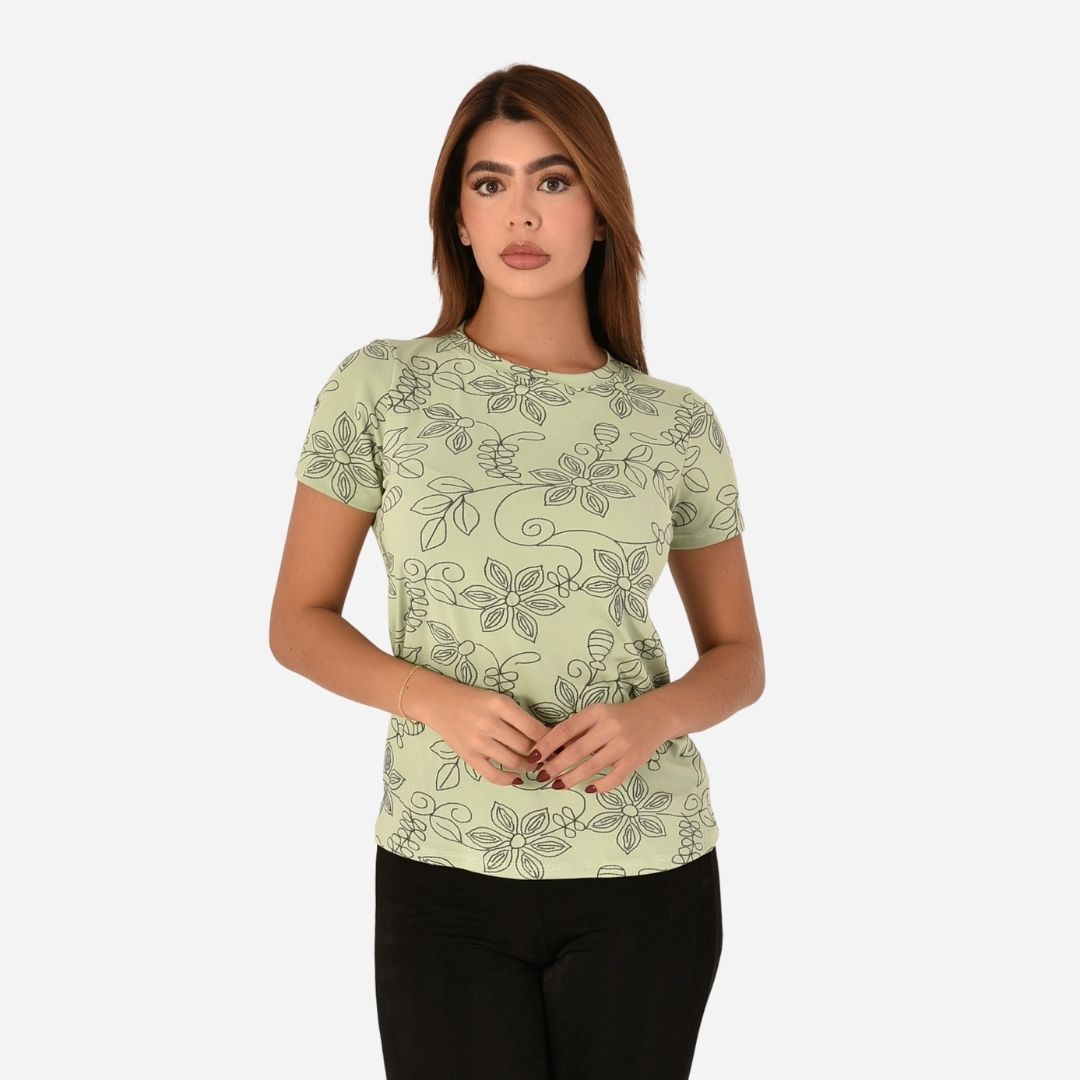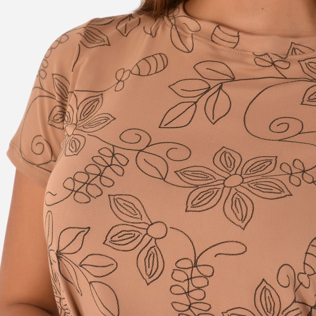 Presenta un diseño floral full print vibrante y femenino, cuello redondo, manga corta y silueta semi ajustada que resalta la figura sin perder comodidad.