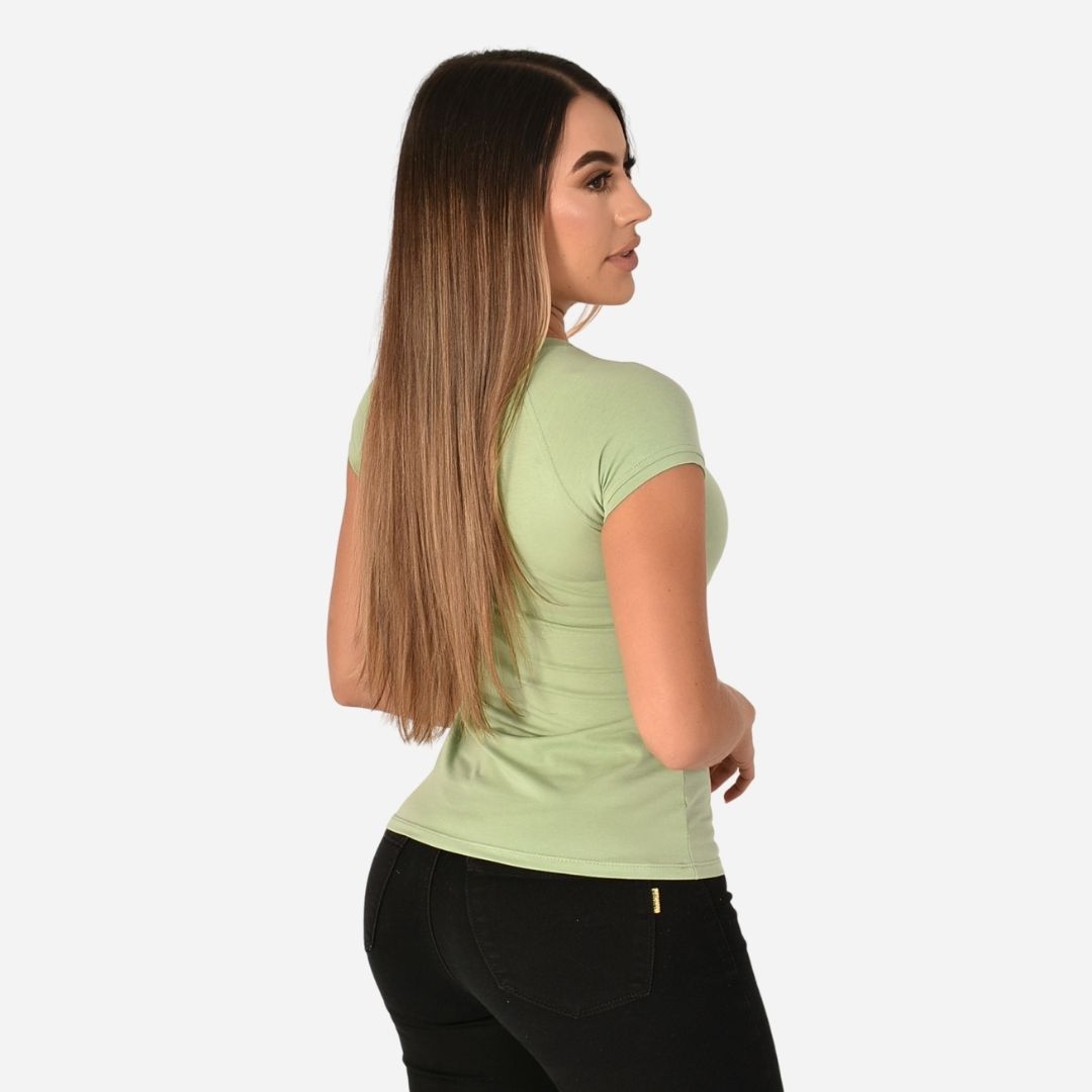Cuenta con cuello redondo, manga corta y una silueta ajustada que realza tu figura con estilo y comodidad.