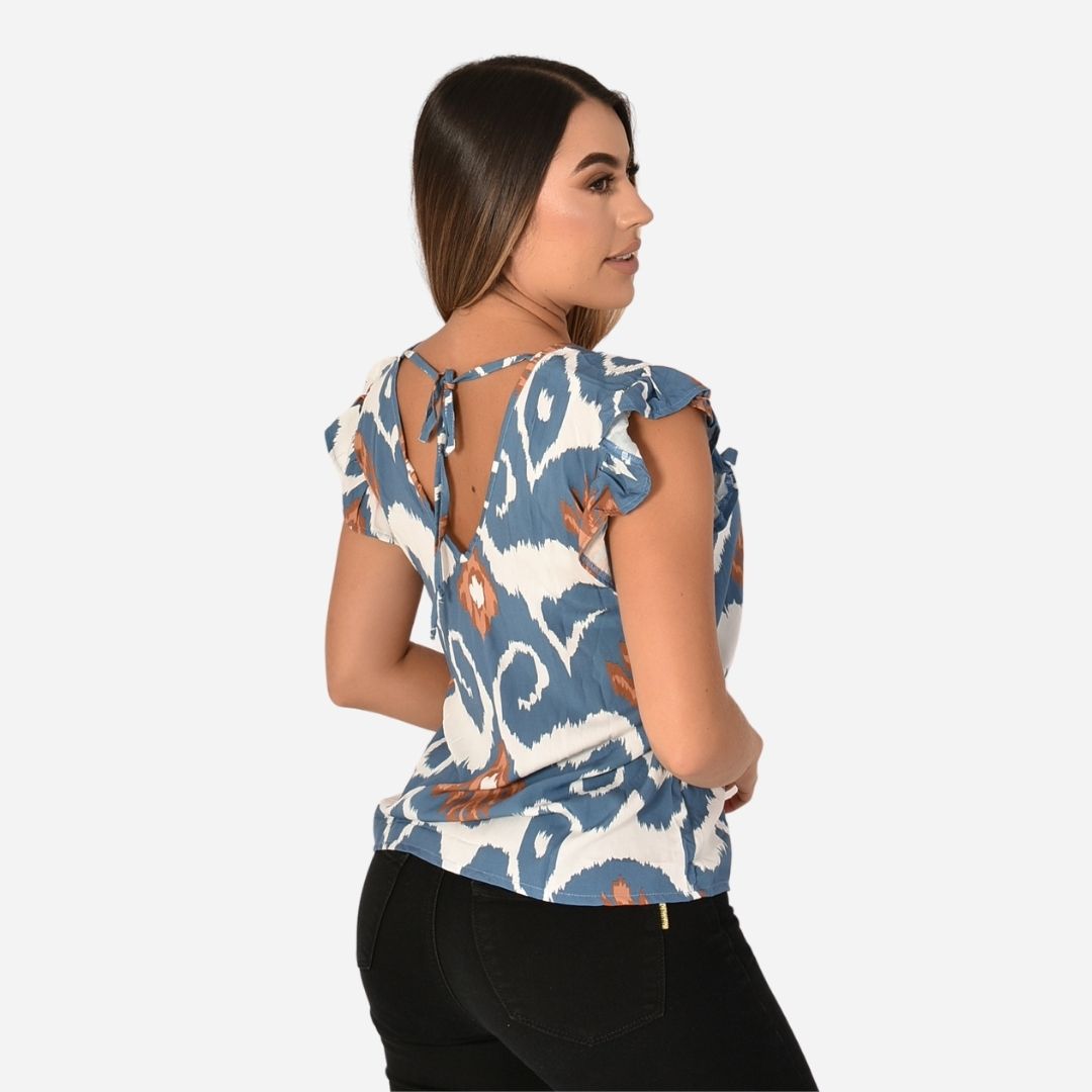 Blusa de marca Anace , confeccionada en tela trufa de alta calidad, con un diseño full print que resalta por su estilo moderno y versátil.