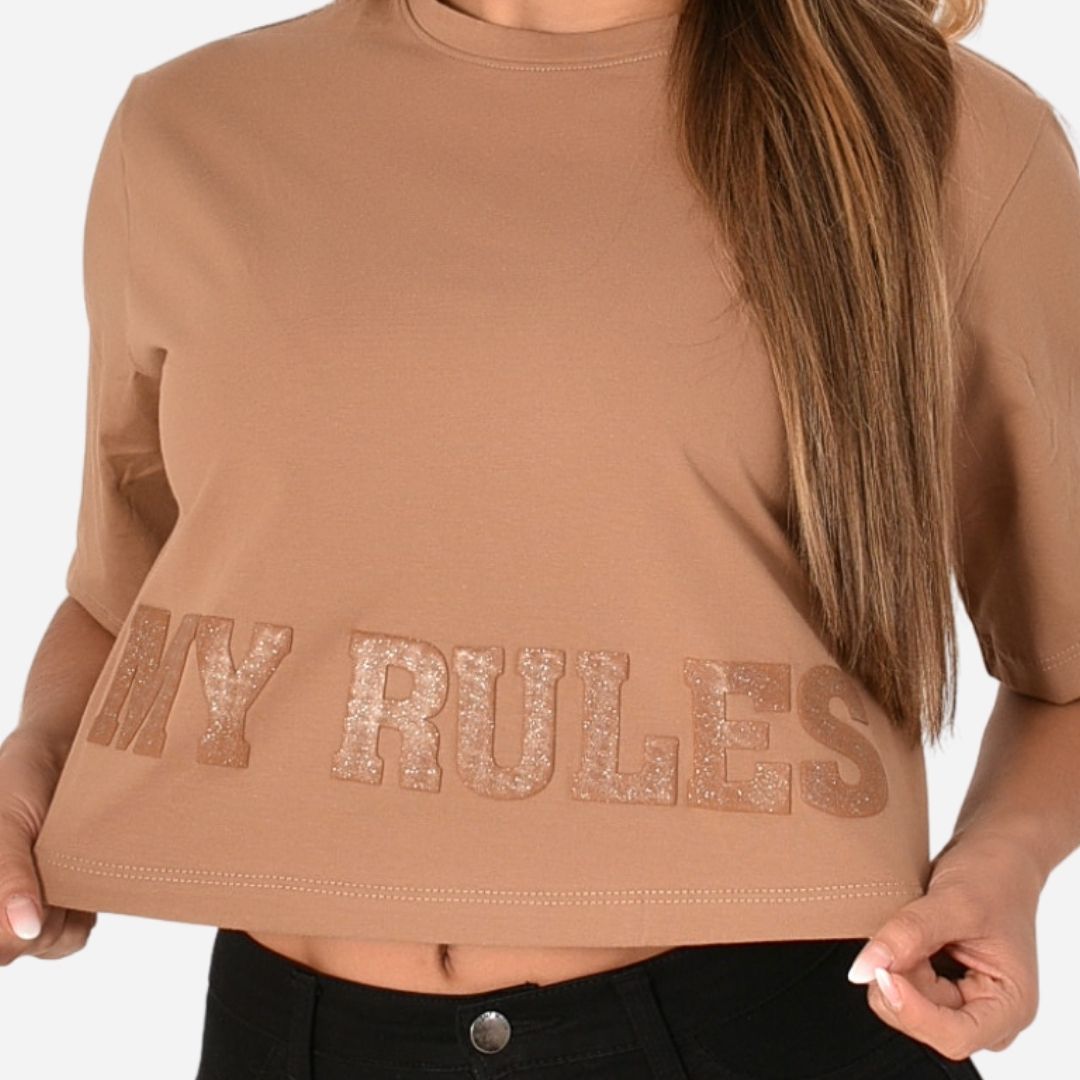 Camiseta de dama marca Anace, estilo crop top oversize, elaborada en tela T400 de excelente calidad, suave, elástica y con buena recuperación de forma.