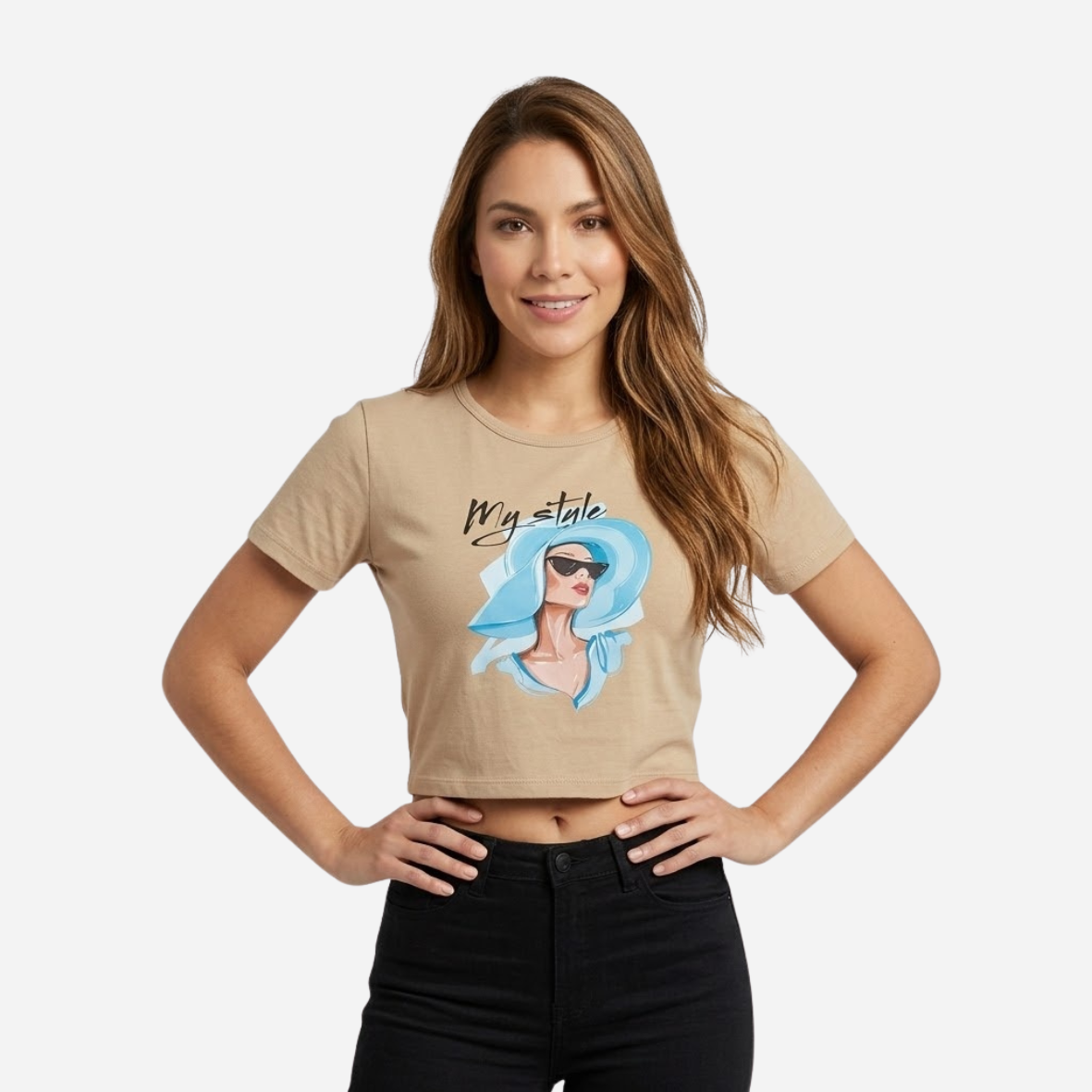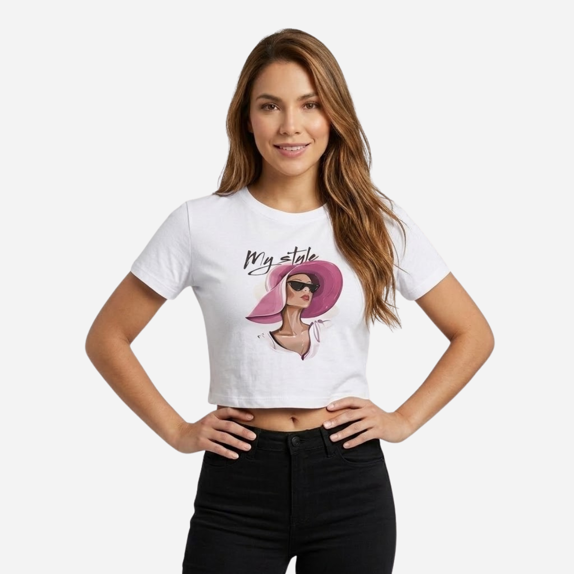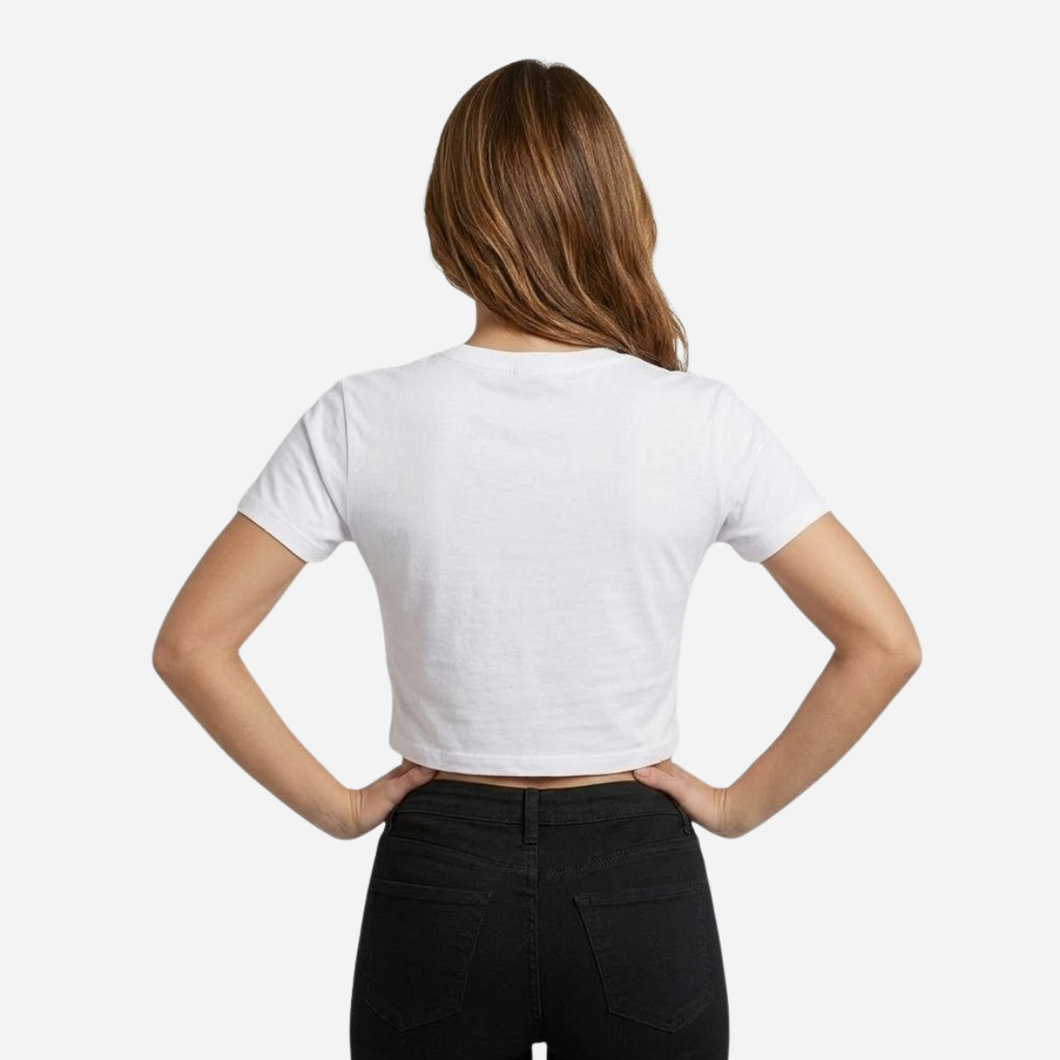 Presenta un diseño localizado en la parte frontal que aporta un toque moderno y femenino a la prenda. Cuenta con manga corta, cuello redondo y silueta semi ajustada, ideal para resaltar la figura sin perder confort, perfecta para looks casuales y urbanos.
