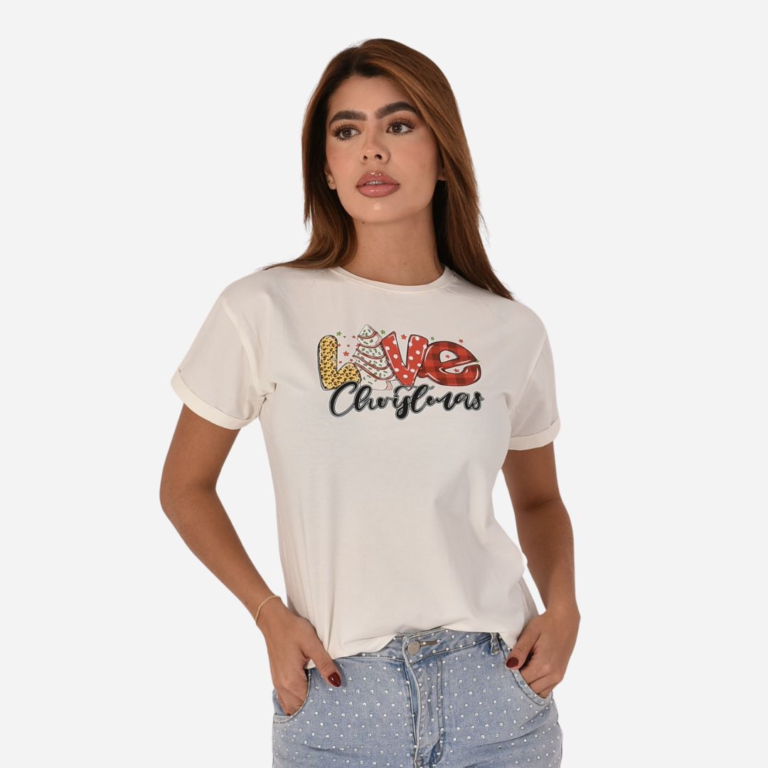 Camiseta navideña de dama marca SYG, elaborada en tela fría de alta calidad, fresca, suave y perfecta para la temporada...