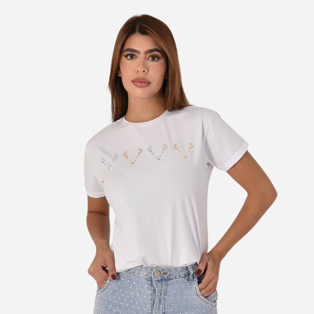 Camiseta navideña de dama marca SYG, elaborada en tela fría de alta calidad, fresca, suave y perfecta para la temporada...
