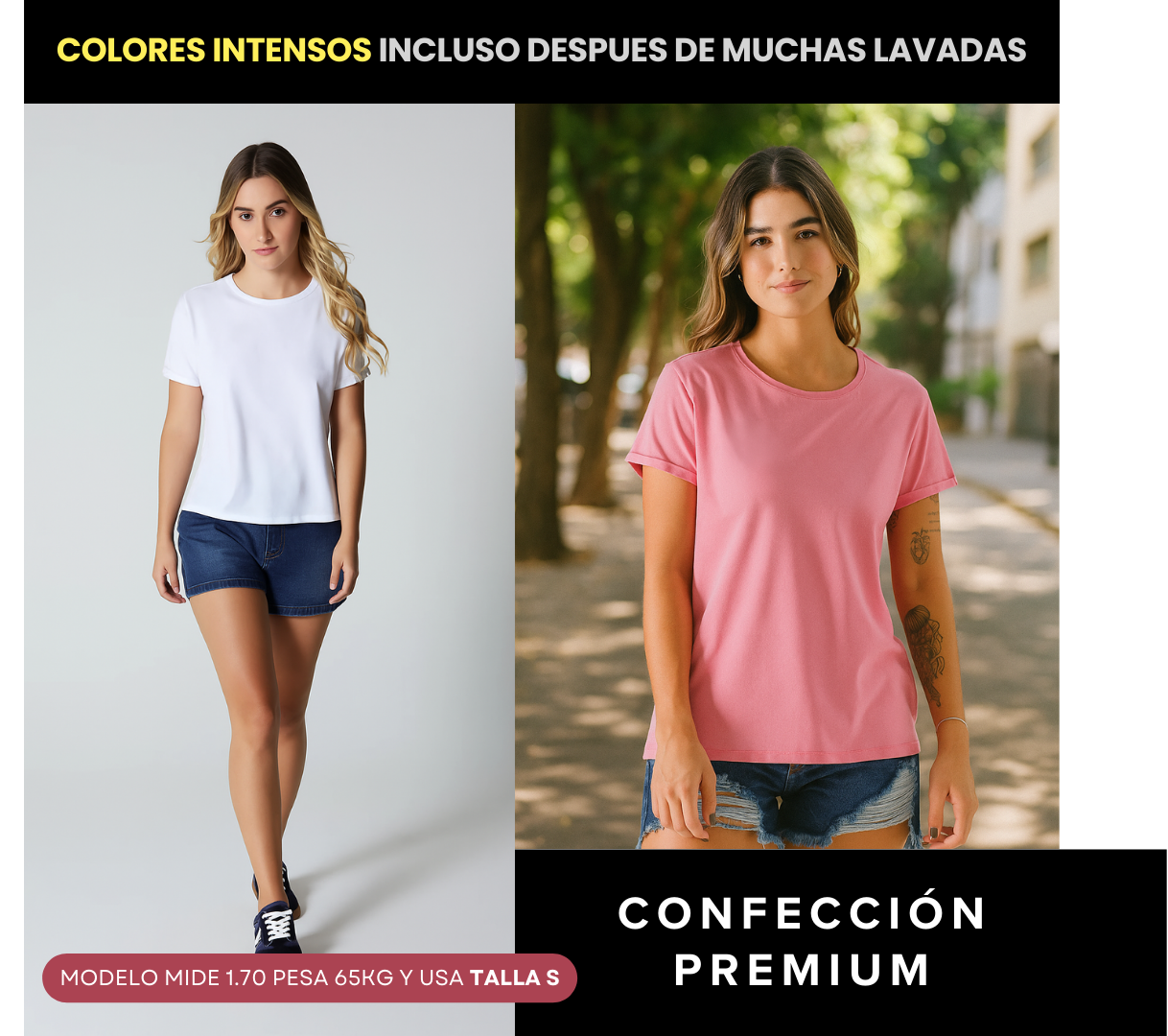 Para preservar la calidad y prolongar la vida útil de tu camiseta, se recomienda lavar con agua fría, preferentemente a mano o en ciclo delicado. Evita el uso de blanqueadores y opta por secado al aire o a baja temperatura en secadora.