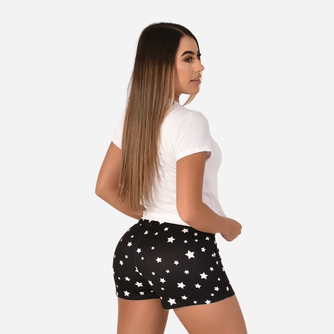 El short está sublimado con la misma temática, creando un conjunto armonioso y moderno ideal para descansar con estilo.