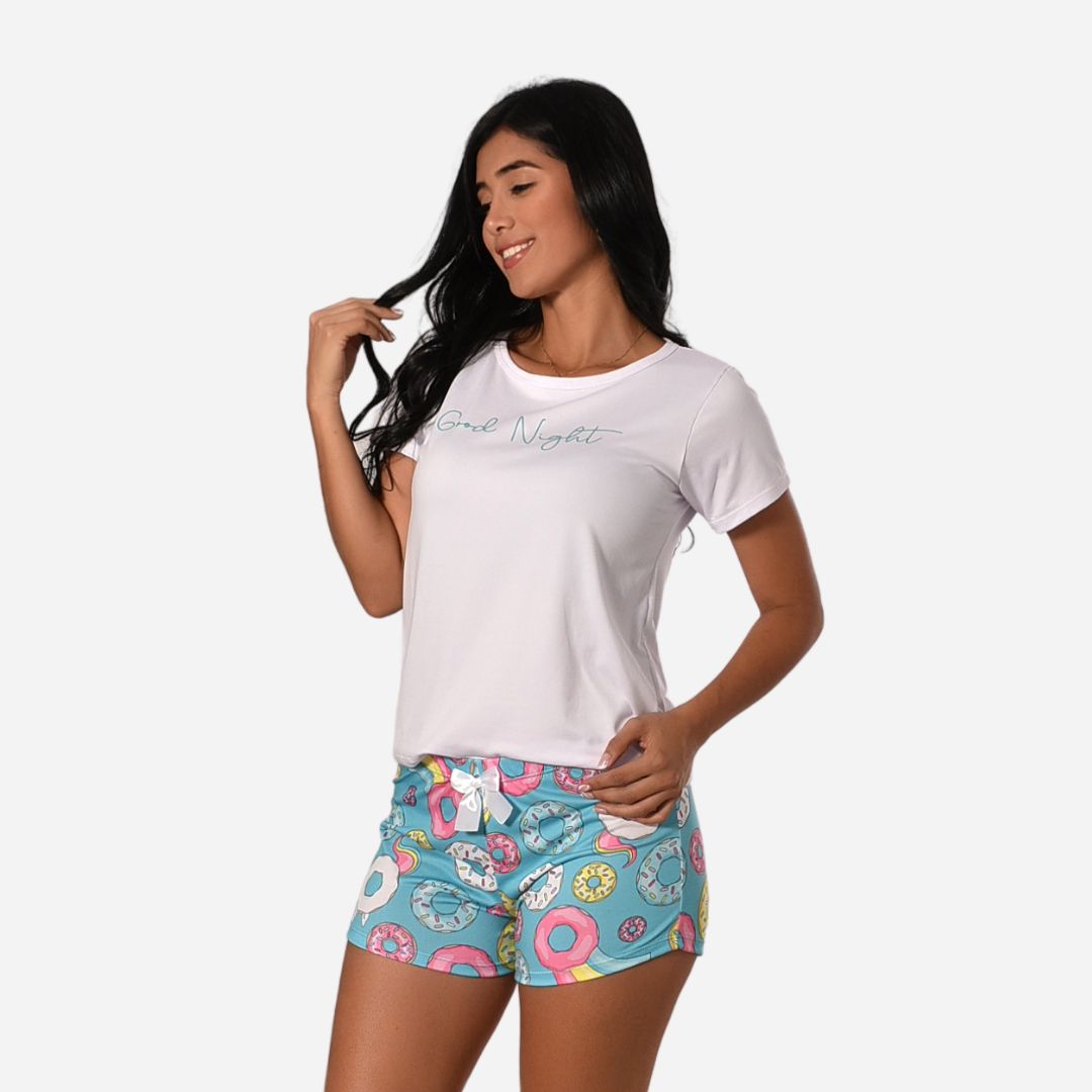 Pijama de dama elaborada en tela Piel de Durazno, una tela suave y delgada, ideal para dormir cómoda y relajada,...