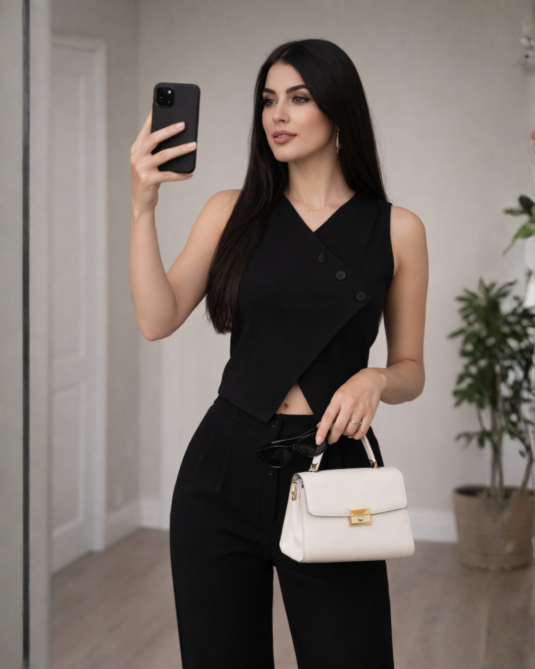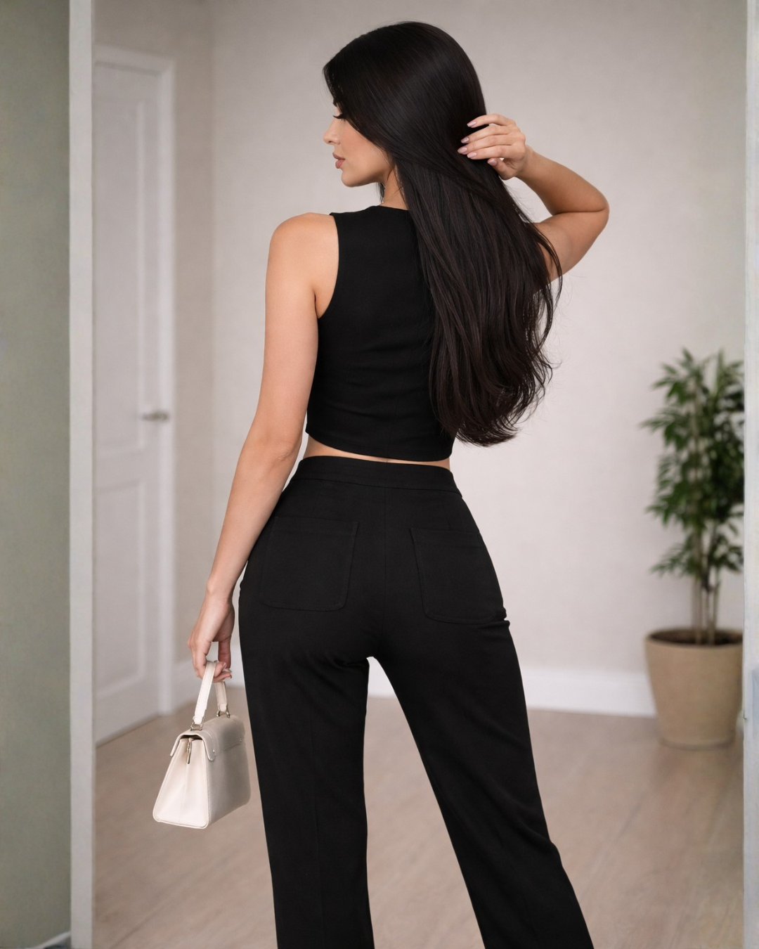 Un conjunto que redefine la elegancia contemporánea. El pantalón, confeccionado en tela Danessa, ofrece una caída impecable y una estructura...